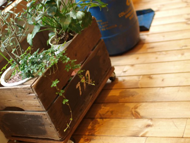 木箱にWAX塗るとだいぶいい感じになりましたー