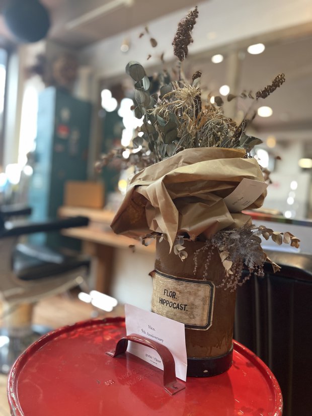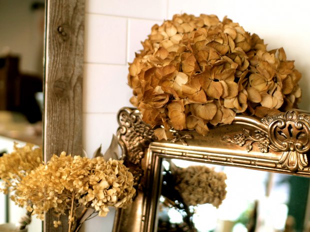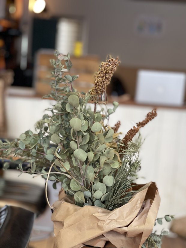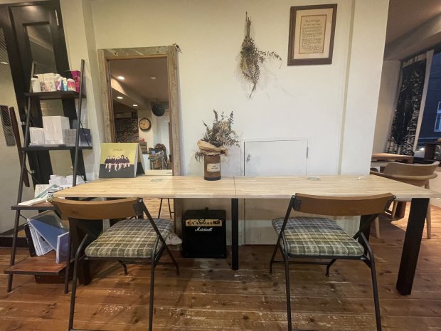 店内セット面の横に置いてあるドライフラワーと鏡は、とても良い雰囲気をかもしだしています。
